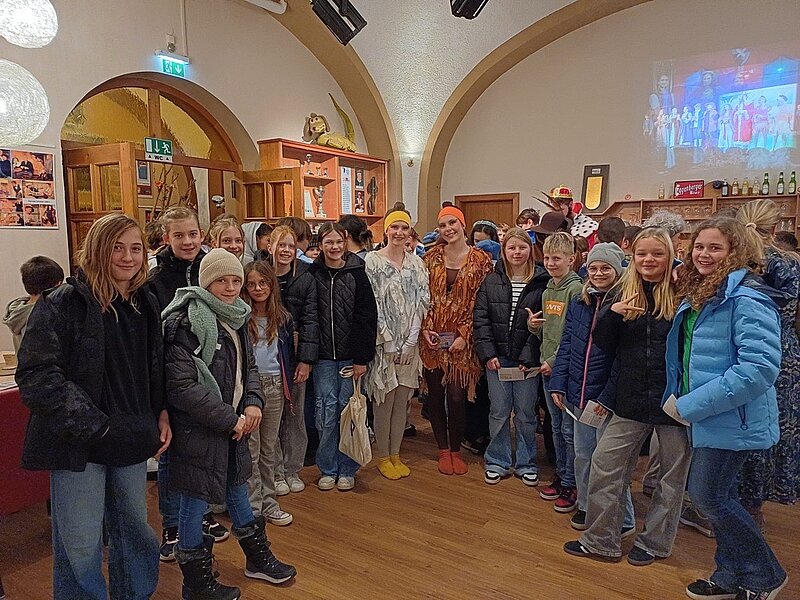 14 Schüler/innen der 2m Klasse besuchten am 15. November eine Vorstellung der Kellerbühne Puchheim. „Der gestiefelte Kater“ steht zurzeit auf dem Spielplan. Die jugendlichen Darsteller/innen, die musikalischen Einlagen sowie die beeindruckende Bühnentechnik zogen die Kinder, die die List des Katers auch unterstützen durften, in ihren Bann. Fotos mit den Schauspieler/innen, die auch fleißig Autogramme ausstellten, zauberten zusätzlich ein Lächeln auf so manches Kindergesicht.
