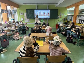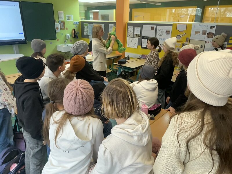 Im Rahmen des Biologieunterrichts zum Thema „Das Gebiss“ kam am 30. Jänner Elisabeth von der Kinderzahnarztpraxis zur 1m auf Besuch und zeigte anhand anschaulicher Modelle und Bilder, wie die Kinder ihre Zähne pflegen und schützen können und führte sogar ein kleines Experiment mit einem Plaque-Färbemittel durch. Außerdem erklärte sie auf kindgerechte Art die Tätigkeit sowie die Werkzeuge eines Zahnarztes.